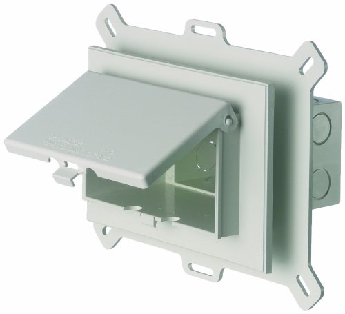Arlington DBHS1W-1 Electrical Box with Weatherproof Cover for Vinyl-Siding, New-Construction, White, Horizontal/1-Gang Low Profile IN BOX for New Vinyl Siding Construction. One-piece, recesses electrical box with weatherproof-in-use cover for new siding applications. Horizontal Non-metallic cover and base. Accepts most single gang wiring devices and uses standard indoor wall plates or a GFCI cover plate. UV rated plastic for long outdoor life. The IN BOX one-piece assembly replaces the installation of an electrical box, siding block, and bubble cover assembly. Installs in the wall, so less of it shows outside. The outer flange covers cut ends of siding. Cover is removable for easier device installation and no gaskets are required. Bug plugs ship installed in the box to seal unused cord hole openings. Box is textured and paintable, UV rated for long outdoor life. Installation instructions: 1. cut a 3-14-Inch x 5-1/2-Inch hole in substrate. pull wiring. 2. Install NM cable connector and wire, attach IN BOX to substrate. 3. Install siding, inserting the cut ends of the siding under the outer flange of the IN BOX. 4. Install wiring device(outlet or switch) per manufacturer's instructions, local and national electrical codes. 5. Accepts most single gang wiring devices and uses a standard indoor wall plate. Limited 1-Year Warranty to cover manufacturer's defects. For product returns, Contact Store First.Keywords:Recessed; outlet; switch; device; outdoor; voltageFor added convenience, covers are removable for electrical installation. Replace cover upon completion.Bug Plugs ship installed to seal unused cord hole openingsOuter flange covers cut ends of sidingIncludes box with cover, bug plugs, (1) standard duplex and (1) GFCI face plate, installation screws, and NM cable connectorIN BOX's one-piece assembly replaces the installation of an electrical box and bubble cover assembly